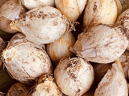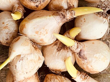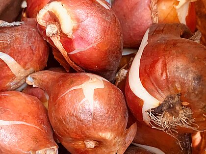 Im Herbst ist es Zeit, Blumenzwiebeln in die Erde zu stecken. Schon im nächsten Frühjahr blühen viele Blumen. Wie pflanzt man eine Blumenzwiebel richtig? Zuerst ist es wichtig, keine schimmeligen, weichen oder bereits stark ausgetriebenen Zwiebeln zu verwenden. Dann gräbt man mit einer Gartenschaufel ein Loch an der gewünschten Stelle. Als Faustregel gilt die doppelte Zwiebelhöhe als Pflanztiefe. Die Zwiebeln werden dann aufrecht in das Loch gesteckt und das Loch mit Erde aufgefüllt und leicht angedrückt. Um im Frühjahr richtige Farbtupfer im Garten zu haben, werden Zwiebelpflanzen immer in grösseren Gruppen gepflanzt.