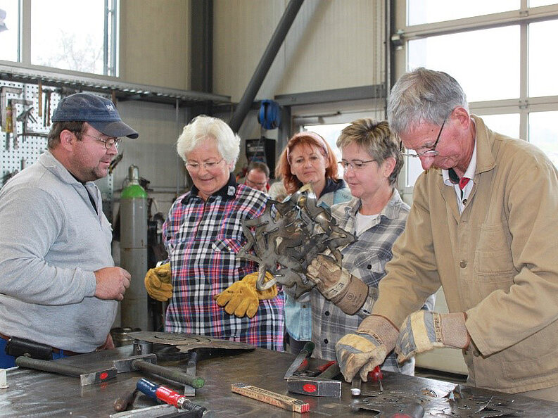 An einem Samstagmorgen im November versammelte sich eine kleine Gruppe Interessierter in der Werkhalle der Keller Metallgestaltung. Nach einer kurzen Instruktion durften die Teilnehmerinnen schon bald selbst Hand anlegen und sich ein erstes Mal an Plasmaschneider und Schweissanlage versuchen.