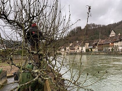 Auch Obstbäume müssen jährlich geschnitten werden. Durch den Schnitt soll das Gleichgewicht zwischen Fruchtbildung und Triebwachstum des Baumes sowie die Fruchtbarkeit der Bäume erhalten werden.